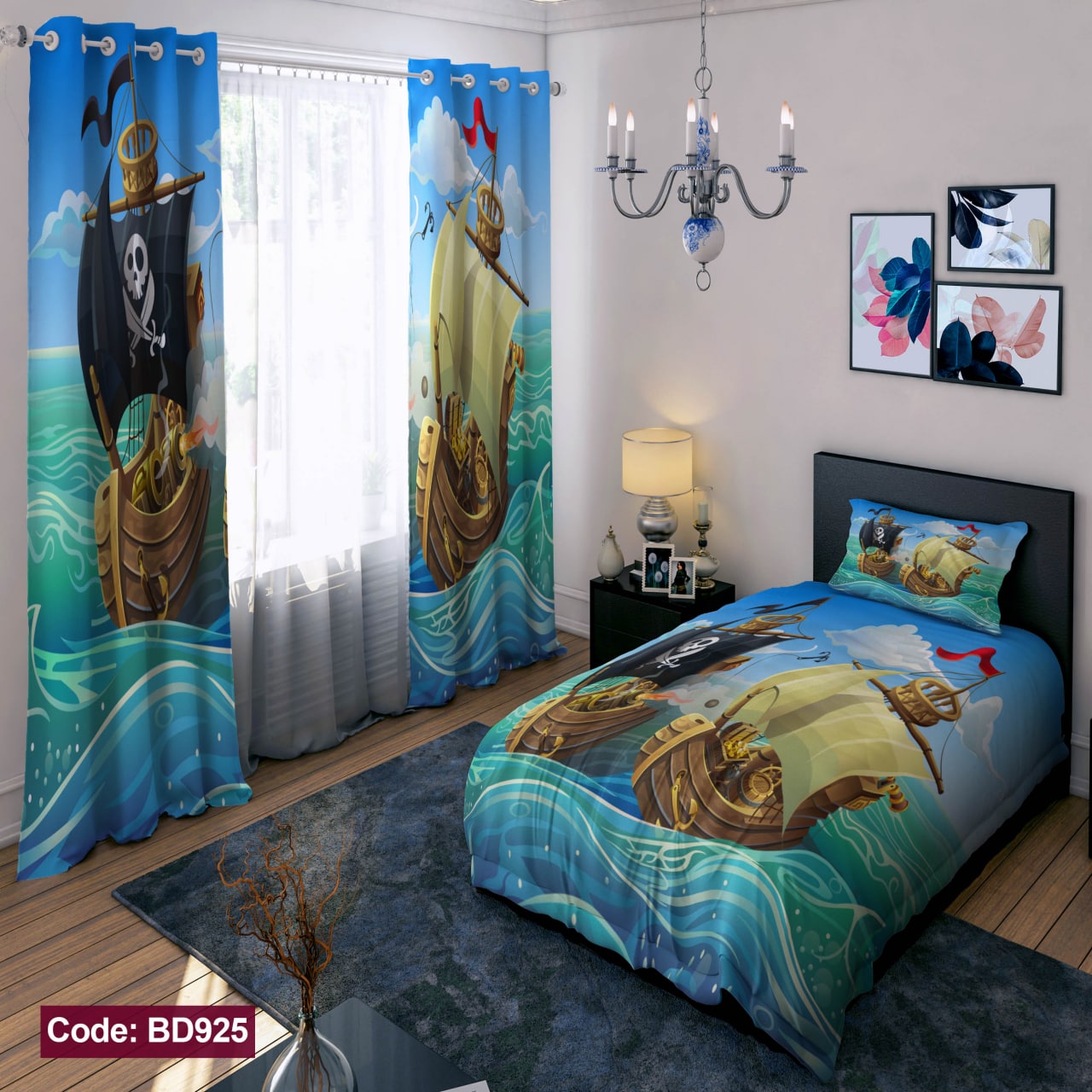 سرویس روتختی و پرده سه بعدی کشتی تکنفره ۴ تکه