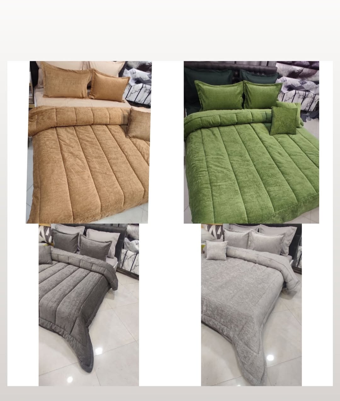 یک لحاف یک ملافه کشدار دو عدد روبالشی دو عدد رو کوسنی