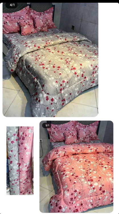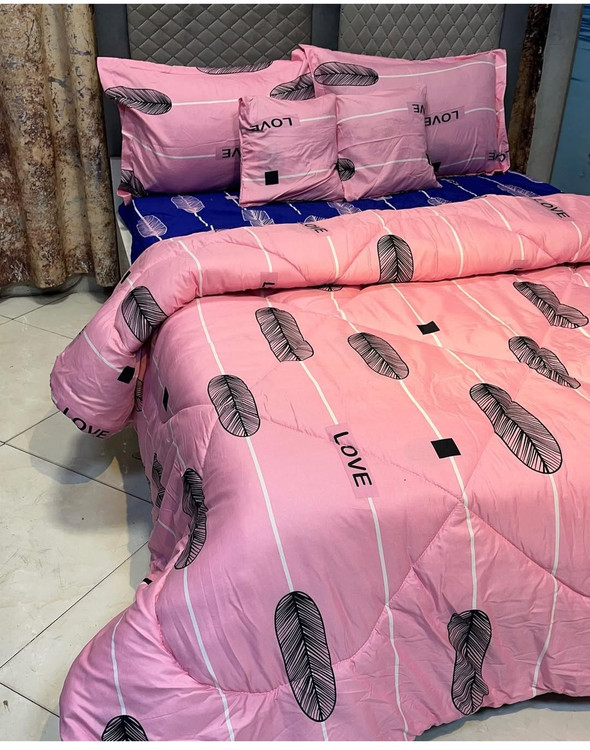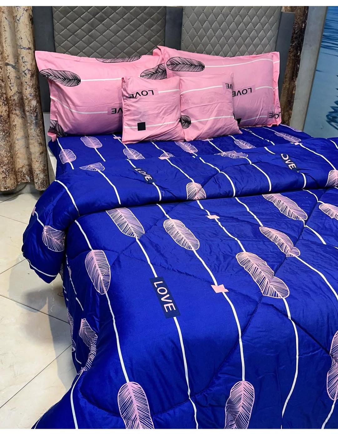یک لحاف یک ملافه کشدار دو عدد روبالشی دو عدد رو کوسنی