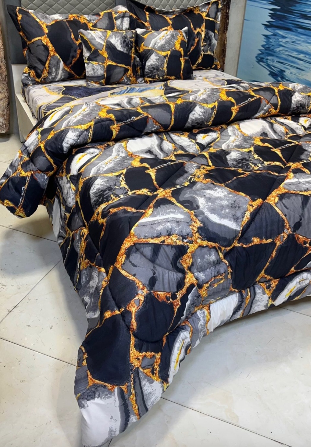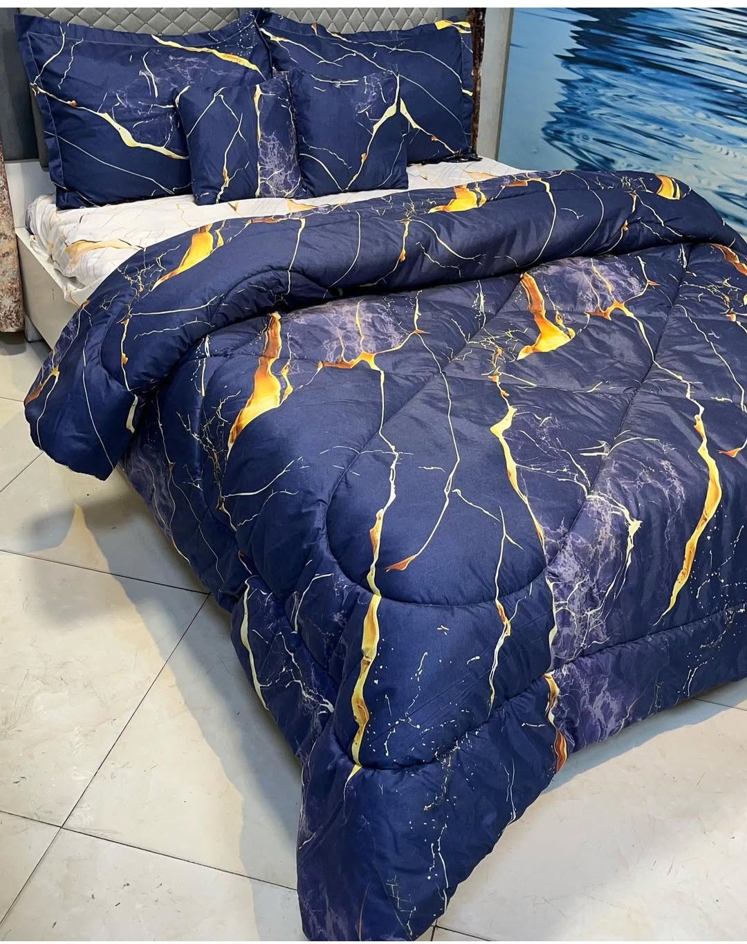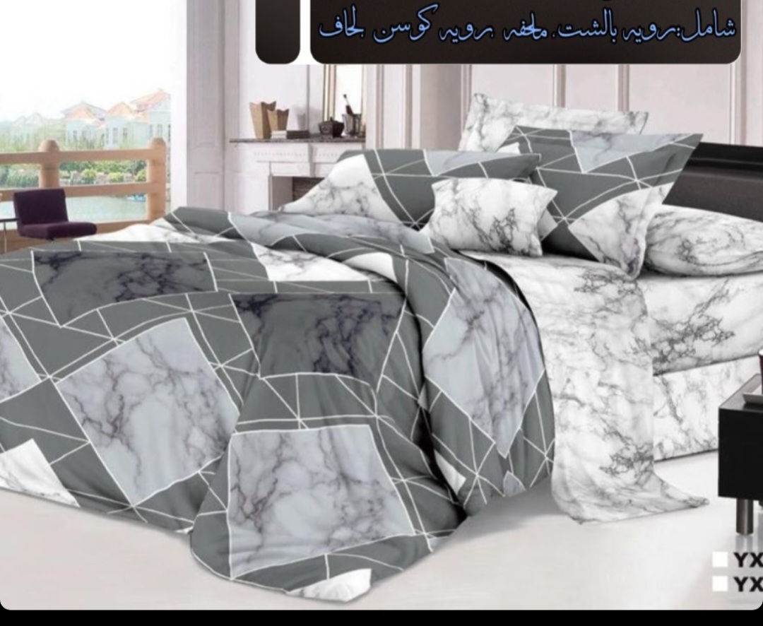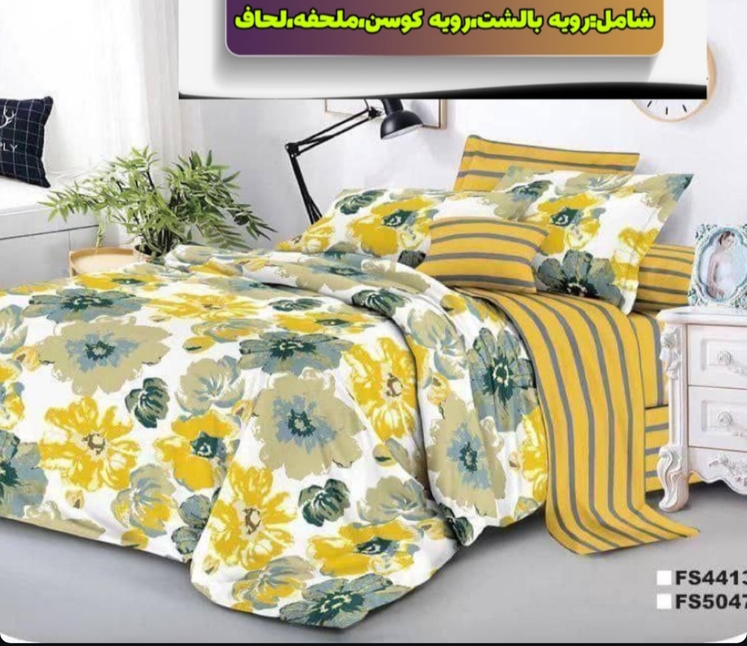 یک لحاف یک ملافه کشدار دو عدد روبالشی دو عدد رو کوسنی