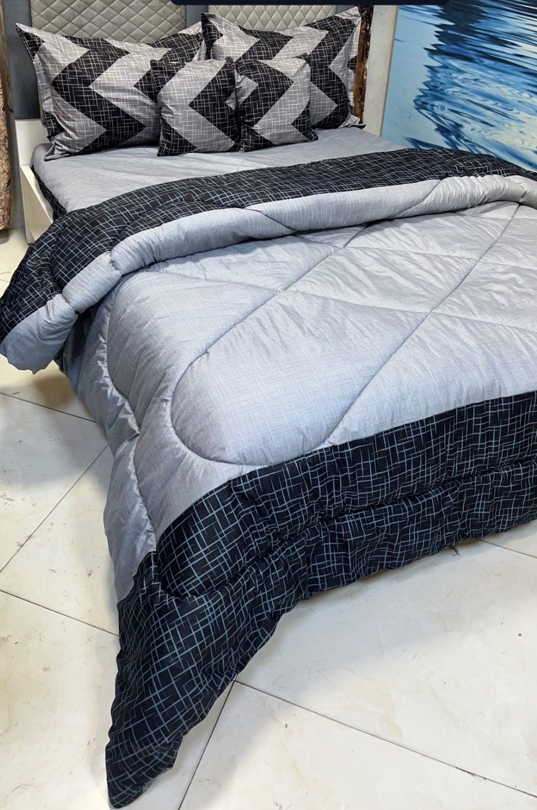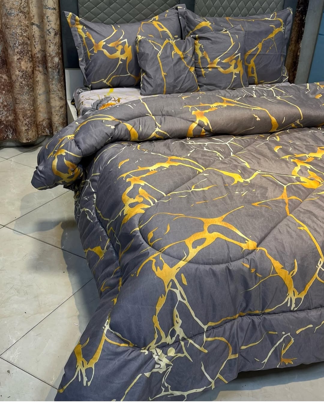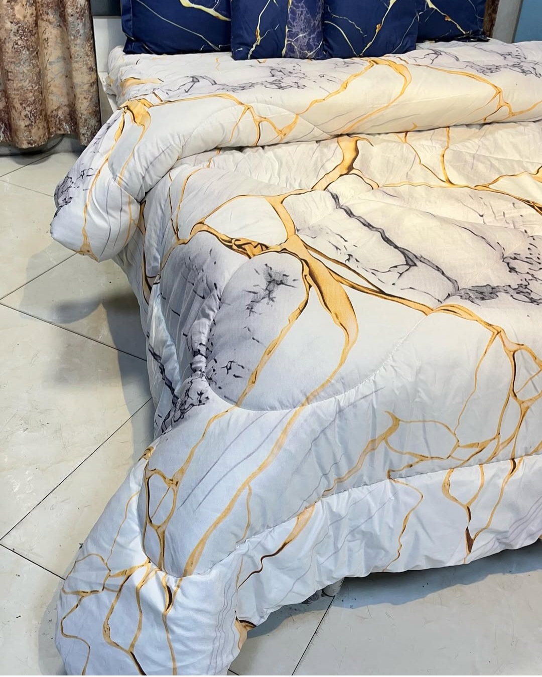 یک لحاف یک ملافه کشدار دو عدد روبالشی دو عدد رو کوسنی