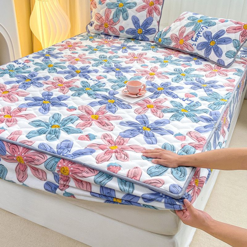 روتختی مخملی تمام کش مناسب تشک ۱۸۰ در ۲ همراه با روبالش