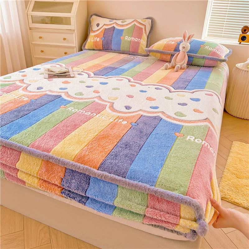 اجزای سرویس خواب: روتختی مخملی تمام کش مناسب تشک ۱۸۰ در ۲ همراه با روبالش