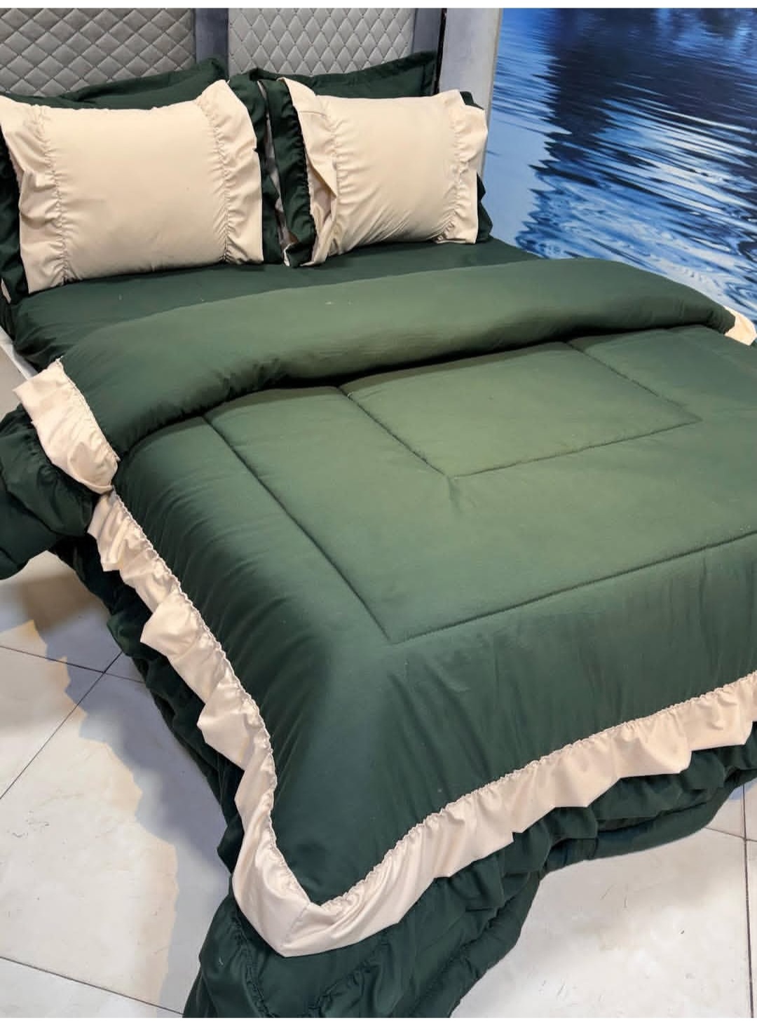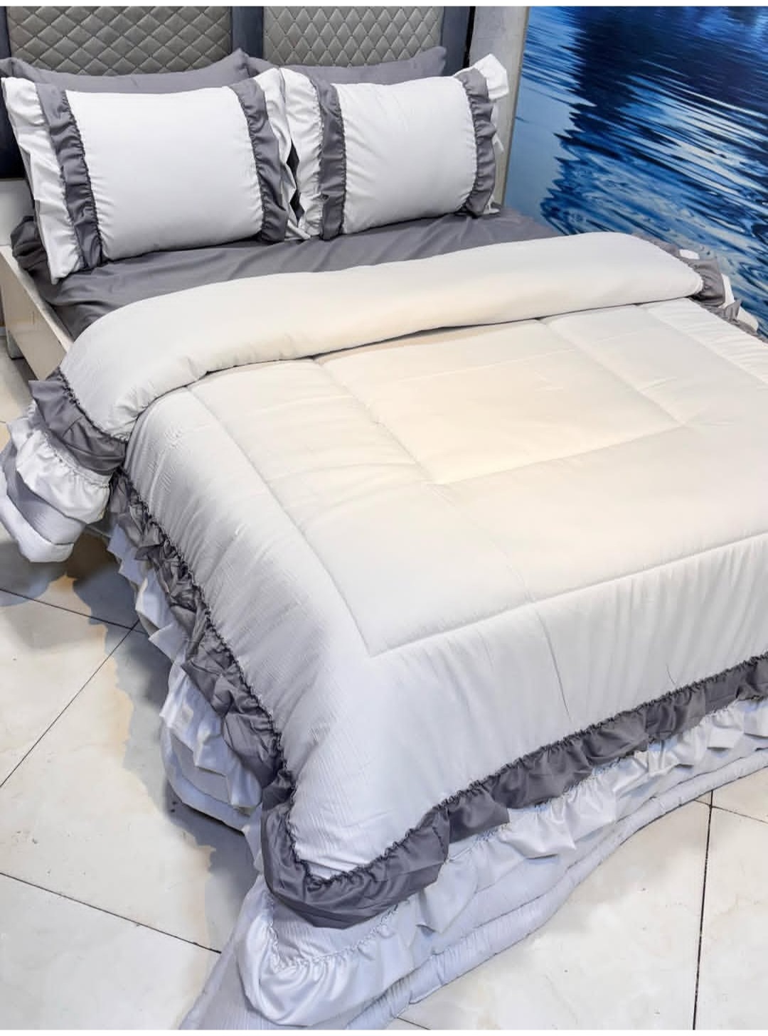 لحاف چیندار با دوخت دیجیتالی یک ملافه کشدار ۴ عدد روبالشی