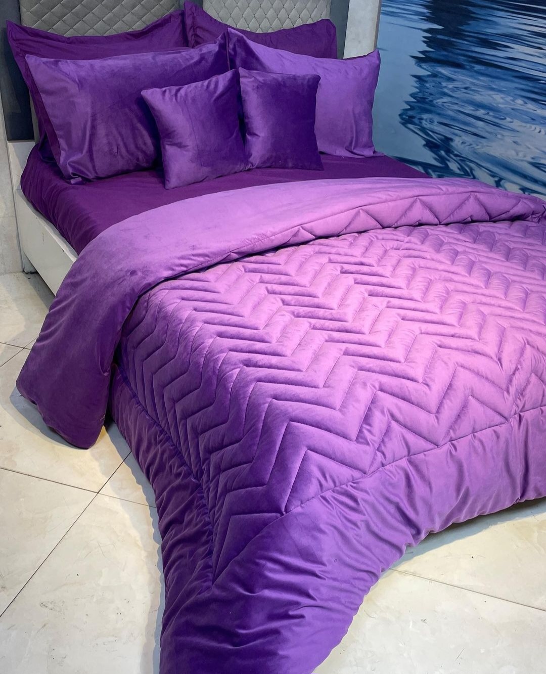 یک لحاف با دوخت دیجیتالی یک ملافه کشدار دو عدد روبالشی دو عدد رو کوسنی