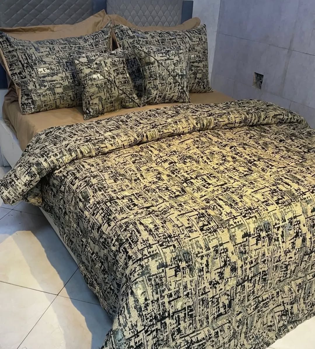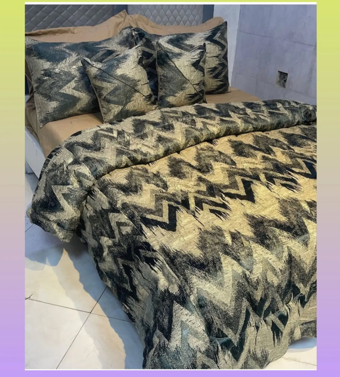یک لحاف یک ملافه کشدار دو عدد روبالشی دو عدد رو کوسنی