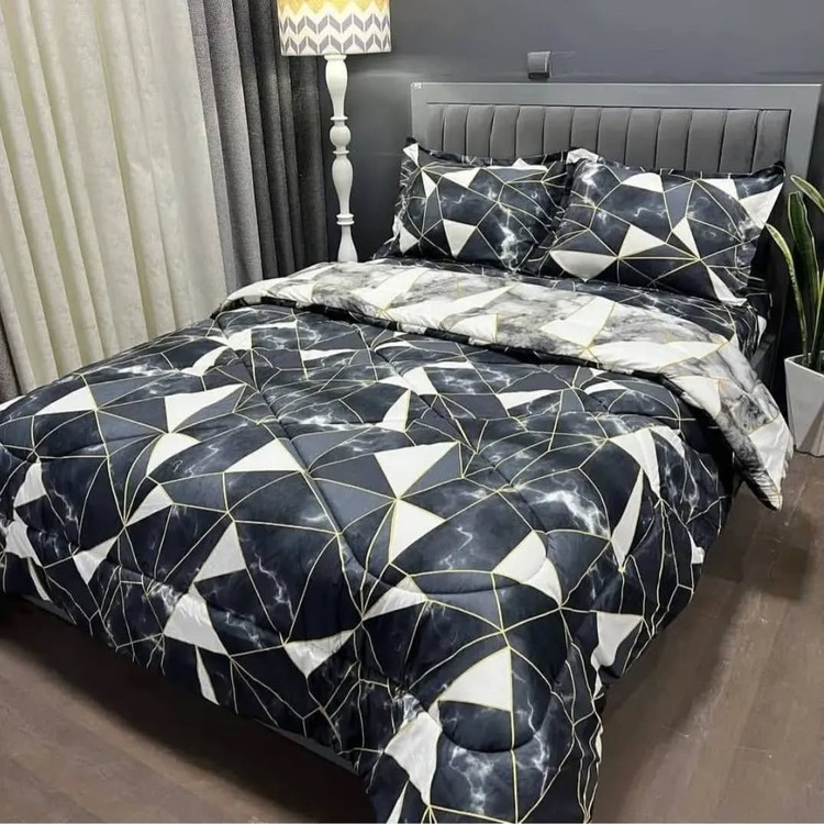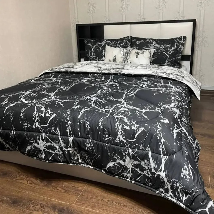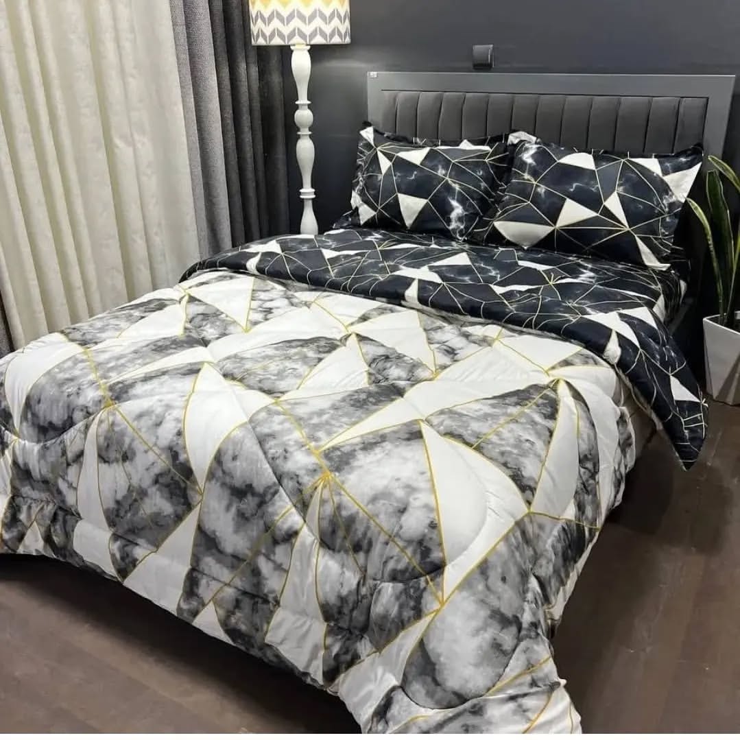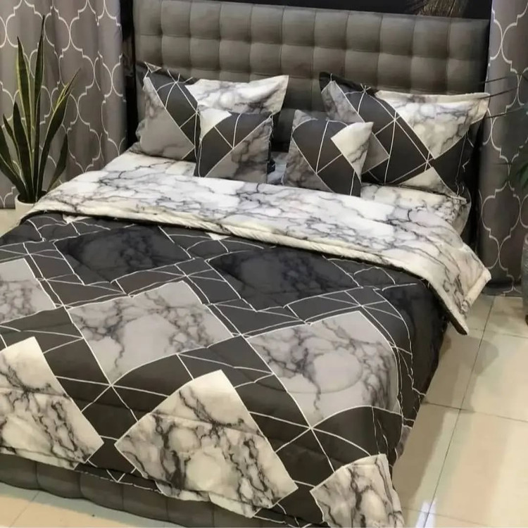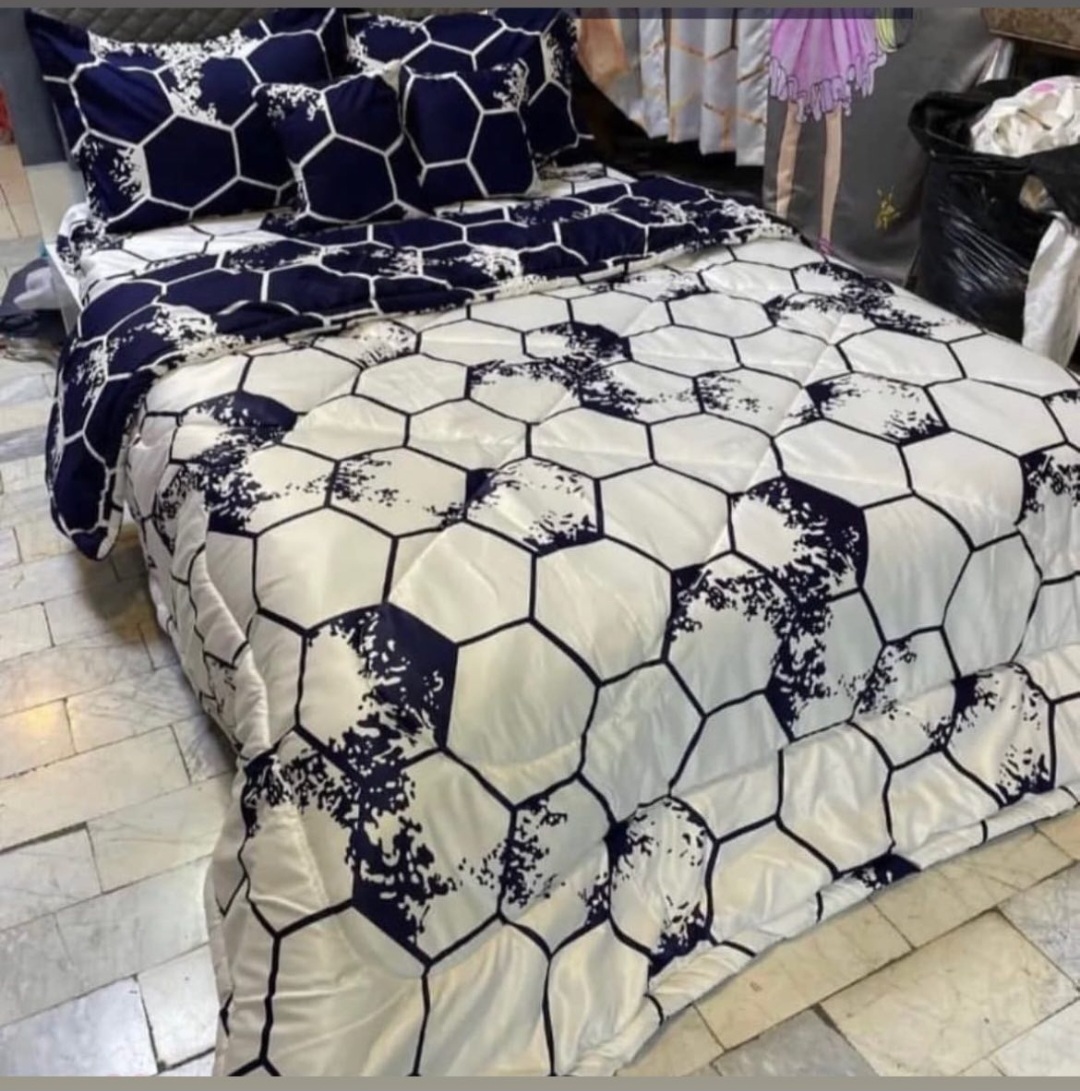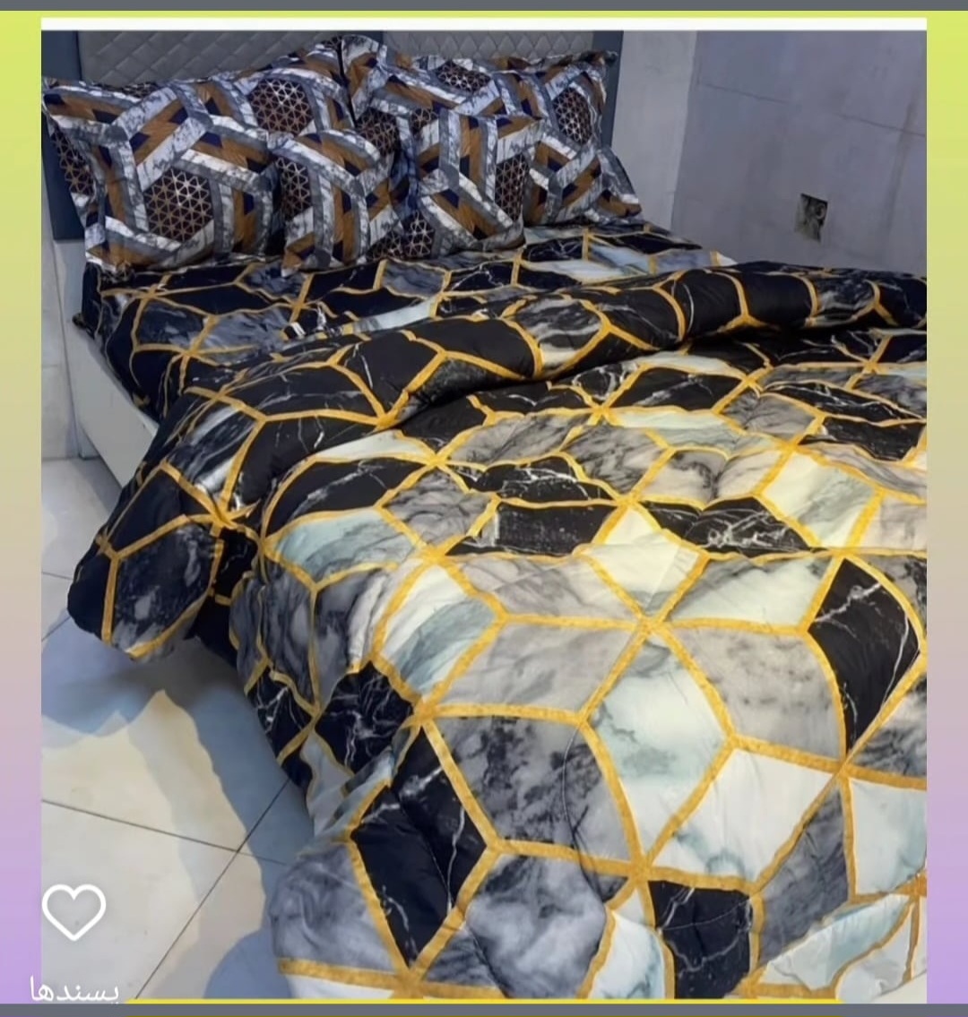 یک لحاف یک ملافه کشدار دو عدد روبالشی دو عدد رو کوسنی